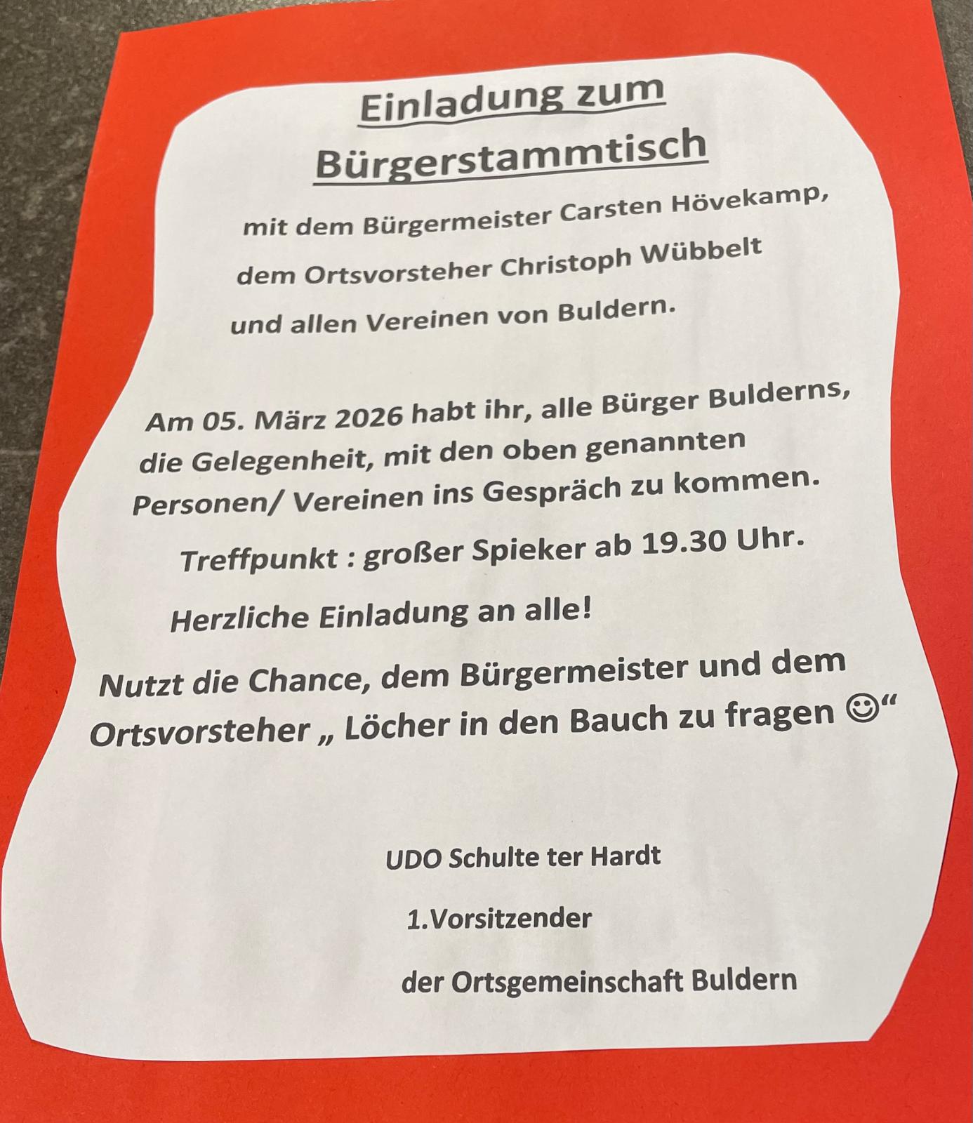 Ortsgemeinschaft: Bürgerstammtisch mit dem Bürgermeister sowie den Vereinen