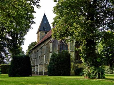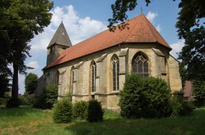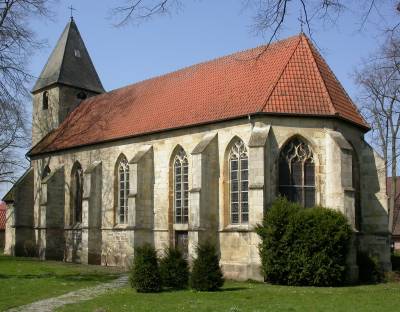 Der Turm wurde im 15. Jahrhundert um ein Kirchenschiff erweitert. Die spitzzulaufenden Fenster zeigen, dass es sich hier nun auch um einen gotischen Baustil handelt. Als Material wurde Baumberger Sandstein verwendet. Im Dreißigjährigen Krieg wurde die Kirche schwer verwüstet und in nur 1 1/2 Monaten fünfmal ausgeraubt. Viele kostbare Schätze gingen dabei verloren.