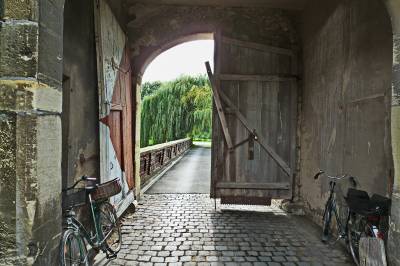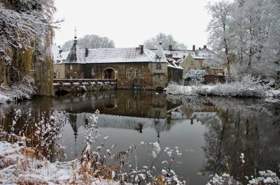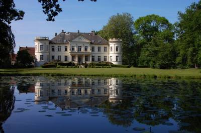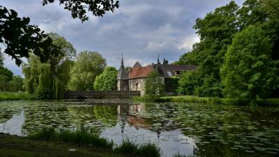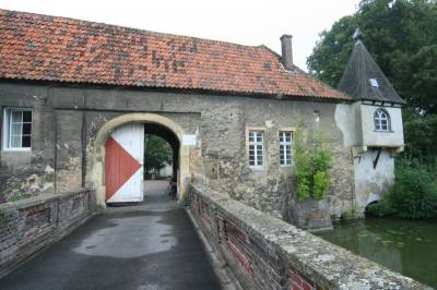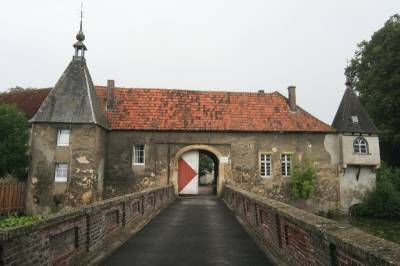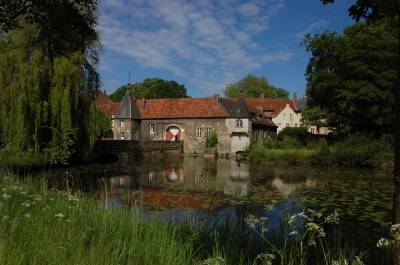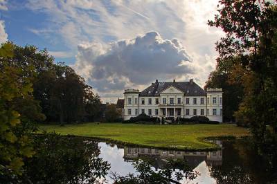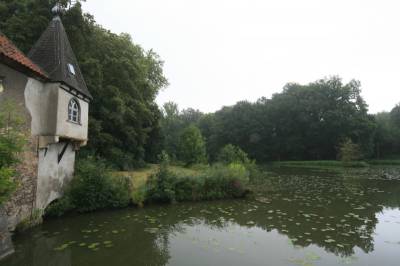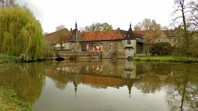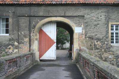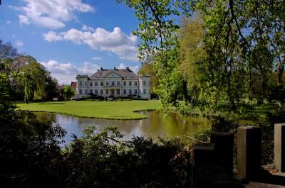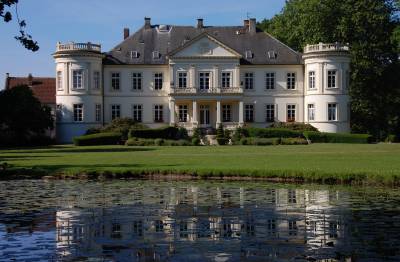 Sie verstehen natürlich, dass Sie das Grundstück nicht betreten dürfen, es ist ein Privatgelände. Stellen Sie sich bitte vor, wie früh morgens die ersten Sonnenstrahlen die Fassade erstrahlen und sich alles im ruhigen Wasser der alten Gräfte spiegelt.