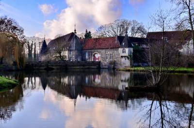 Die Ruhe im Wald, das Zwitschern der Vögel. Haus Buldern wurde im 13. Jahrhundert erstmalig erwähnt und war der Sitz der Familie Droste zu Buldern und später der Familie von Lembeck. Durch Heirat gelangt das Gebäude im 15. Jahrhundert in den Besitz der Familie von Diepenbrock.