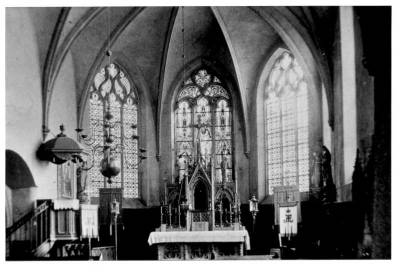 Spätgotische Malereien und Dekorationen befinden sich heute noch im Inneren der Kirche. Die Gewölberippen zeigen Blätter- und Blütenschmuck. Mit den Jahren wuchs die Gemeinde und die Kirche wurde zu klein. Somit beschloss der Kirchenvorstand eine neue, größere Kirche zu bauen, an der Stelle im Dorf, wo sie heute in den Himmel ragt.