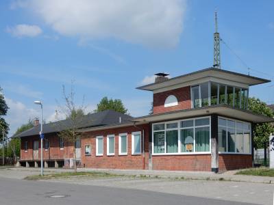 Am 15. Oktober 1884 konnte so der Bahnhof Buldern eröffnen. So wie das Gebäude heute vor Ihnen steht, entstand es 1956 mit Stellwerk, Wartehalle, Fahrkartenschalter und Nebenräume, direkt am Güterschuppen von 1878. Das erste von drei Drucktastenstellwerken in Deutschland machte diesen Neubau erforderlich. Diese Gebäudekombination ist einzigartig in Deutschland.