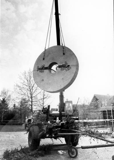 „Dieser schöne Brunnen wurde vom 1987 gegründeten Kunstkreis Buldern, 1994 für den Ortsmittelpunkt entworfen. Den Erbauern war es wichtig, dass der Dorfbrunnen etwas der Dorfgeschichte zeigt. Die Grundlage ist somit ein Mühlenstein der das Dorf symbolisiert. Darauf aufgestellt sind drei Pflugscharen, stellvertretend für die Bauerschaften Limbergen, Hangenau und Dorfbauerschaft.