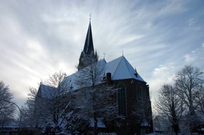 Bevor Sie die Kirche wieder verlassen, denken Sie noch an das Martinsfenster auf der Ostseite und die Geschichte von Pastor Tellen, die ich Ihnen am Brunnen auf dem Spiekerplatz erzählt habe.“