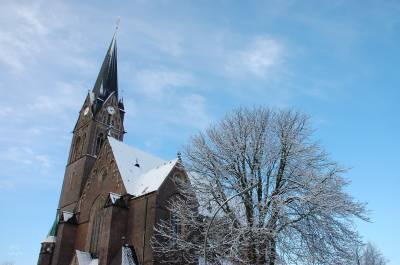 Die Alte Kirche reichte für die Gemeinde nicht mehr aus und mein Sohn stellte diese Fläche zur Verfügung. Der Bau dieser neugotischen Hallenkirche wurde 1906 abgeschlossen.