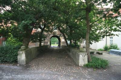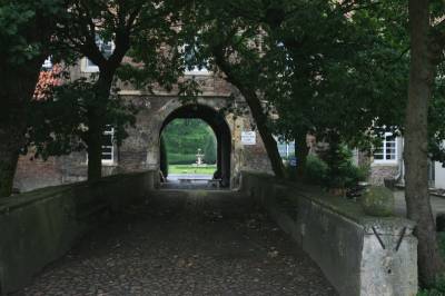 Sie verstehen natürlich, dass Sie das Grundstück nicht betreten dürfen, es ist ein Privatgelände. Stellen Sie sich bitte vor, wie früh morgens die ersten Sonnenstrahlen die Fassade erstrahlen und sich alles im ruhigen Wasser der alten Gräfte spiegelt.